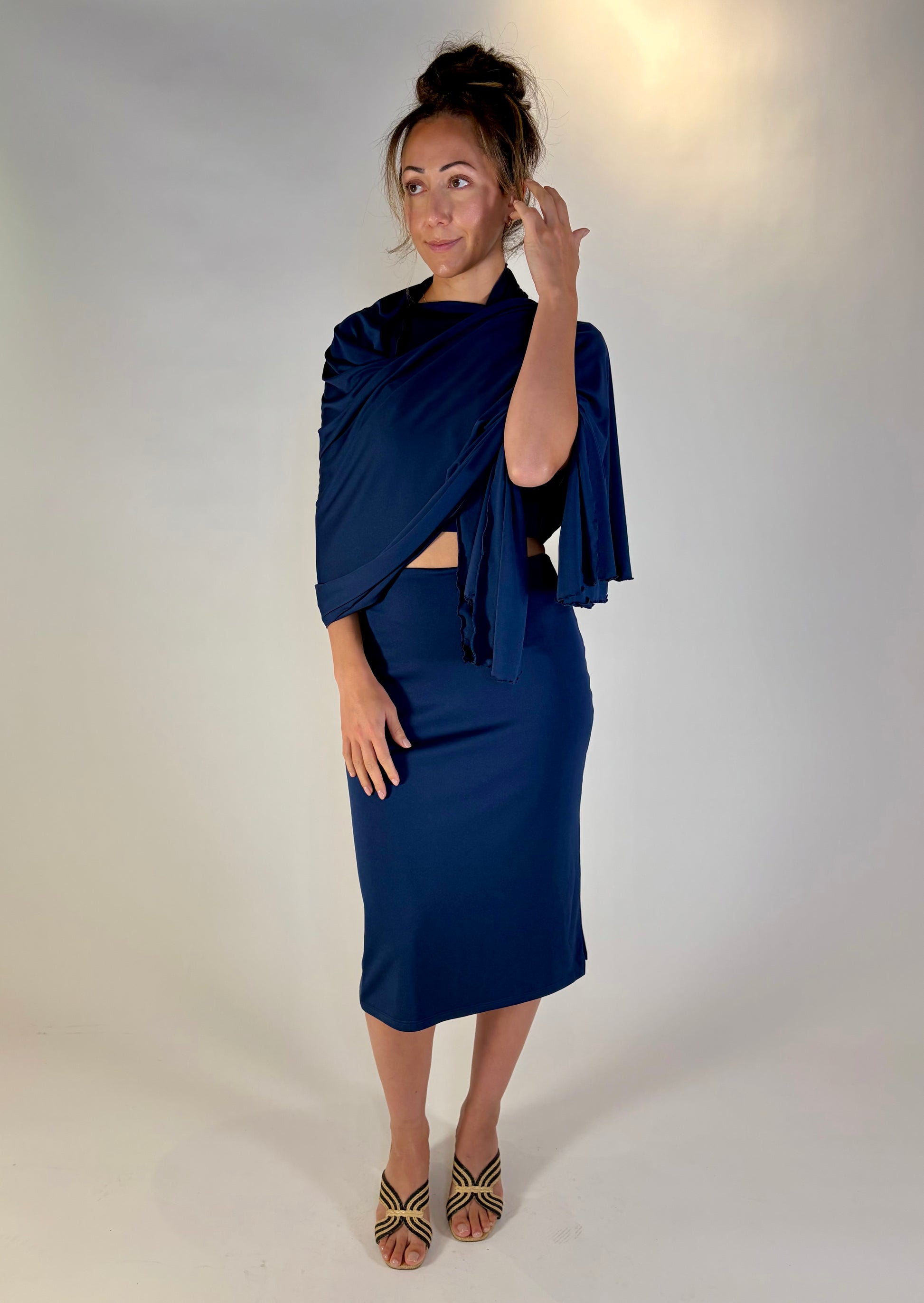 Whether wrapped, tied, or layered, the Ocean Shawl replaces multiple items in your suitcase with a single, beautifully designed piece. This is travel dressing, simplified = intentional, elegant, and endlessly wearable.